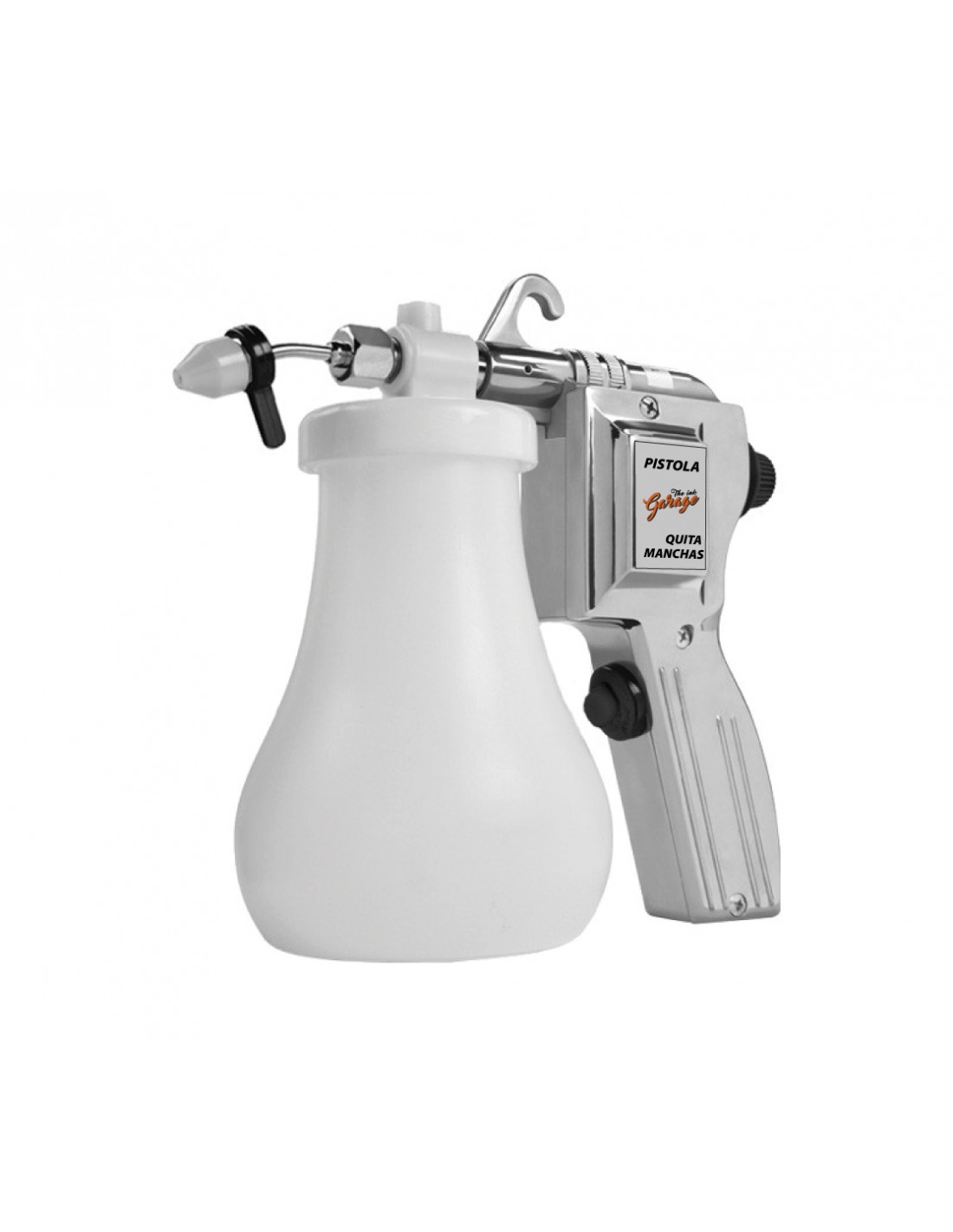 Pistola quitamanchas especialmente diseñada para eliminar las manchas de tinta de los tejidos. Perfecta para recuperar prendas en talleres de serigrafía.